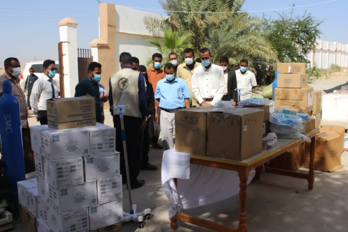 بحضور وكيل محافظة حضرموت الأستاذ / حسن سالم الجيلاني والمدير العام لمكتب وزارة الصحة العامة والسكان بساحل حضرموت الدكتور / عوض يسلم باحنحن تسلم مستشفى الشهيد رياض الجريري للحميات بفلك أجهزة ومعدات طبية لمكافحة جائحة كورونا .
