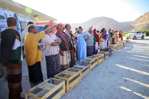 شهدت الانطلاقة الأولى للسباق من مديرية السوم منطقة عصم شرق تريم منافسة محتدمة بين أكثر من 500 طير