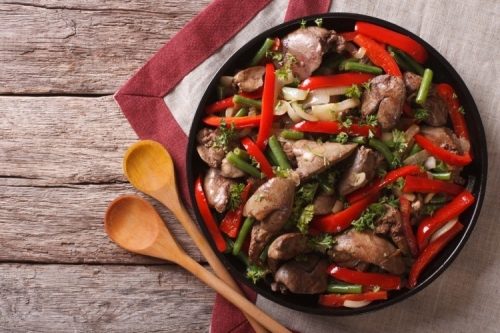 - أضيفي قليل من الزيت، وقومي بتقطيع الكبدة إلى شرائح.
