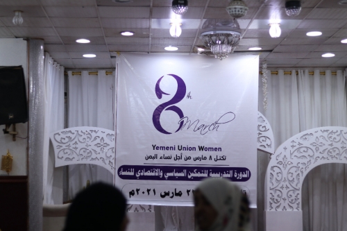 عقدت بالعاصمة عدن الدورة التدريبية الخاصة بالتمكين السياسي والاقتصادي للنساء التابعة لتكتل 8 مارس من أجل النساء ، بمشاركة ممثلين عن منظمات نسوية وناشطات المجتمع المدني والحركات السياسية والذي شارك فيها نخبة من النساء الاكاديميين والحقوقيين ومسؤولي السطلة المحلية في العاصمة عدن. تحت شعار (من اجل الدفاع عن حقوق النساء وابراز دورهن).