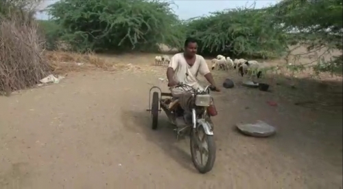 وفي هذا يقول، مليشيات الحوثي زَرعت لنا الألغام بجوار المنازل وفي الطرقات وسادتنا حالةً من الخوف والهلع على حياة أطفالنا، ومن ثم نزحنا وحالنا لا يعلمه إلا الله، ولكن الحمد لله حصلت على موتر (دراجة نارية)، واخترعتُ لها عجلتين، وتمكنتُ من التَّنقل بها والعمل عليها؛ لتوفير قوت أولادي.