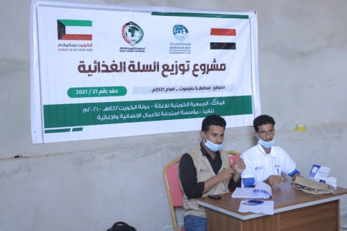 دشن الأستاذ / حسن سالم الجيلاني وكيل محافظة حضرموت بمعية الأستاذة / أوسان محمد باحسين المدير العام لمكتب وزارة الشئون الاجتماعية والعمل بساحل حضرموت والمهندس / سالم باوزير مدير مؤسسة استجابة للإعمال الإغاثية والإنسانية مكتب حضرموت مشروع توزيع السلل الغذائية الذي تنفذه مؤسسة استجابة مقدمة من الجمعية الكويتية للإغاثة تشمل توزيع قرابة 6000 الف سلة غذائية تستهدف الفئات الأشد فقرا والنازحين من محافظات حضرموت ‘ شبوة ‘ مأرب.