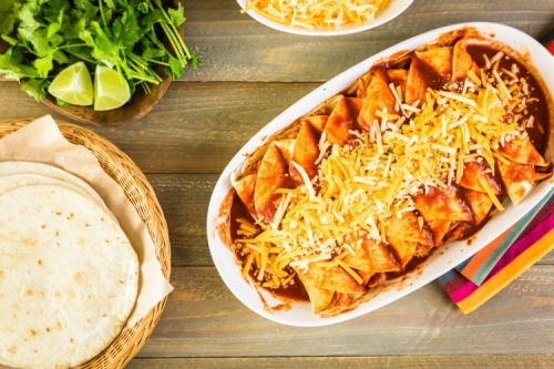 انشيلادا الدجاج ... طبق مكسيكي شهي ومميز نقدم لكِ طريقة إعداده، حضري أرغفة الخبز المحشوة والمغمورة بصوص الطماطم وجبنة الشيدر الشهية، جربي الطبق الآن وشاركينا رأيك بالطعم