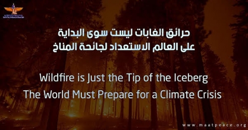 أصدرت مؤسسة ماعت للسلام والتنمية وحقوق الإنسان دراسة جديدة بعنوان "حرائق الغابات ليست سوى البداية.. على العالم الاستعداد لـ جائحة المناخ"، وتتناول الدراسة مخاطر تغير المناخ على الحياة البشرية، ومخاطر هذا التغير على التي تمتد على كافة النظم البيئية، من خلال زيادة الحرائق وما تؤدي إليه من حرائق الغابات، وكذلك الفيضانات التي تهدد بإزالة مدن بأكملها.