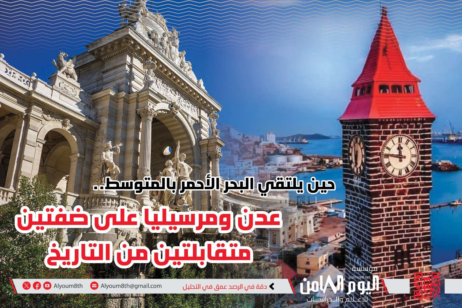 في 20 نوفمبر القادم يفتتح في مدينة مرسيليا الفرنسية معرضًا يستمر لمدة 6 أشهر عن تاريخ العلاقات بين عدن ومرسيليا، وهي مبادرة رائعة، فعندما نتحدث عن عدن ومرسيليا فأن أول ما يتبادر إلى الذهن هو البحر والشعور القوي بالارتباط ومصدر الحياة وسرها الكبير وغاسل الهموم كما يقول الحكماء.