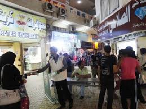 تسول ولكن بطريقة احترافية فتاة في منتصف العشرينات من عمرها، تقف أمام سوق عدن الدولي (في تقاطع المنصورة - الشيخ عثمان)، م...
