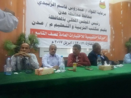 انعقاد الورشة التقيمية لاختبارات الصف التاسع بعدن برعاية محافظ عدن اللواء عيدروس الزبيدي بدأت الاربعاء بعدن أعمال الورشة الوطنية التقييمية للاختبارات...