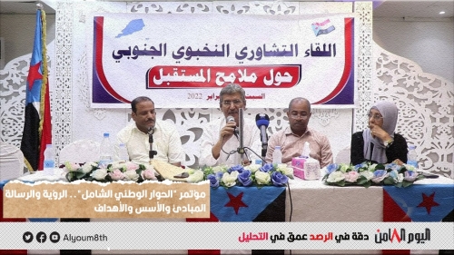 تقرير: "الحوار الوطني".. ملخص "رؤية ورسالة مبادئ وأسس وأهداف" احتضنت العاصمة عدن السبت اللقاء التشاوري النخبوي الجنوبي، حول ملامح مستقبل الدولة الجنوبية القادمة،...