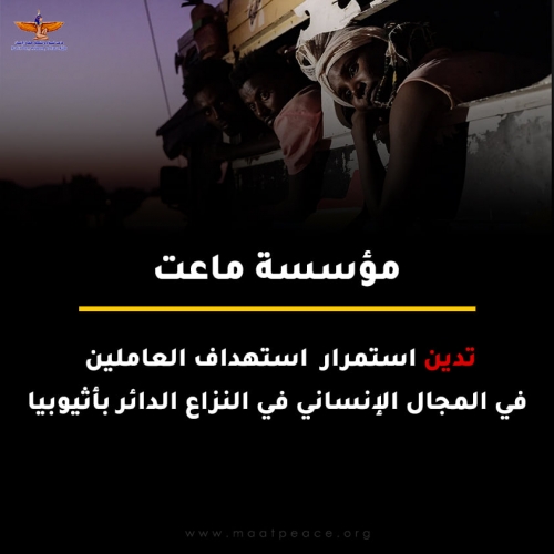 "ماعت" تدين استهداف العاملين في مجال المساعدات الإنسانية في إقليم تيغراي تدين مؤسسة ماعت للسلام والتنمية وحقوق الإنسان استمرار استهداف العاملين في مجال المساعدات الإنسانية ف...