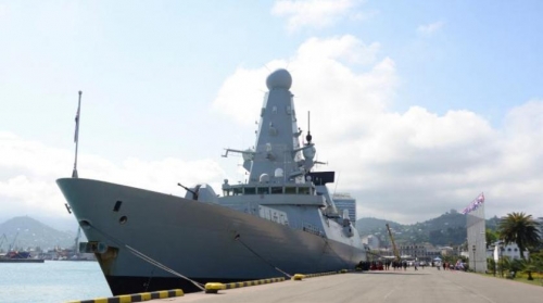 المدمرة «دفيندر» ترسو في ميناء باتومي الجورجي على البحر الأسود رست المدمرة البريطانية «دفيندر»، التي أغضبت روسيا بإبحارها قبالة شبه جزيرة القرم، في مين...