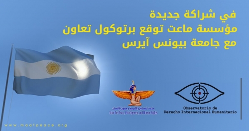 مؤسسة ماعت للسلام توقع بروتوكول تعاون مع جامعة أرجنتينية وقعت مؤسسة ماعت للسلام والتنمية وحقوق الإنسان بروتوكول تعاون مع مرصد القانون الدولي الإنساني بجامعة...
