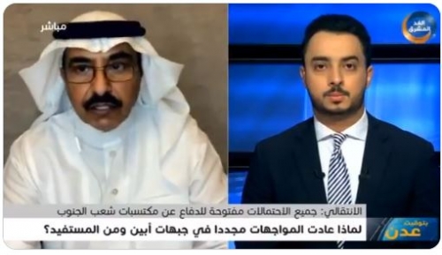 خبير عسكري سعودي: حكومة هادي تدفع بتعزيزات من مأرب إلى أبين أكد الخبير الاستراتيجي والعسكري العميد حسن الشهري، إن حكومة الرئيس اليمني المنتهية ولايته والمتحكم ف...
