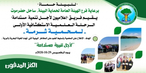 إعلاميون يسلطون الضوء على المخاطر البيئية التي تهدد محمية شرمة - جثمون نظم فريق إعلاميون لأجل تنمية مستدامة رحلة علمية استكشافية الأولى إلى محمية شرمة - جثمون بحضرمو...