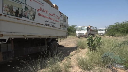 25 طنا مساعدات غذاٸية تصل قری الوازعية غرب تعز بدعم من دولة الإمارات العربية المتحدة سيرت هيئة الهلال الأحمر الإماراتي قافلتها الإنسانية والإغاثية...
