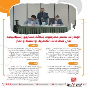 الإمارات تدعم حضرموت بثلاثة مشاريع إستراتيجية في قطاعات الكهرباء والنفط والغاز