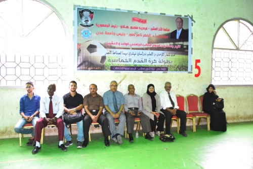 رئيس جامعة عدن يدشن بطولة كرة القدم الخماسية دشن الدكتور / الخضر ناصر لصور رئيس جامعة عدن بمعية الدكتور/ محمد عقيل العطاس نائب رئيس الجامعة لشؤون...