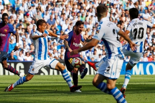 برشلونة يواصل مسلسل انتصاراته وتعثر أول لريال مدريد واصل برشلونة سلسلة انتصاراته بعبور ريال سوسييداد بصعوبة، وتعثر ريال مدريد للمرة الأولى هذا الموسم بت...