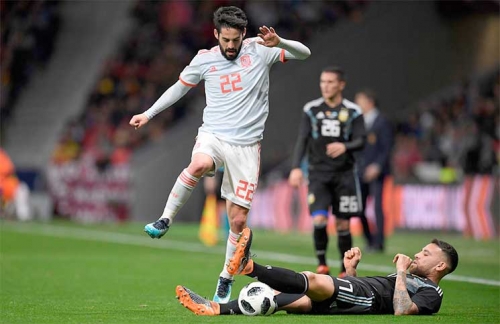 اسبانيا تُحذّر مرشحي المونديال بسحق الأرجنتين أرسلت اسبانيا تحذيرا شديد اللهجة لمنافسيها في كأس العالم بعدما سجل إيسكو ثلاثية في فوز ساحق 6-1 على...