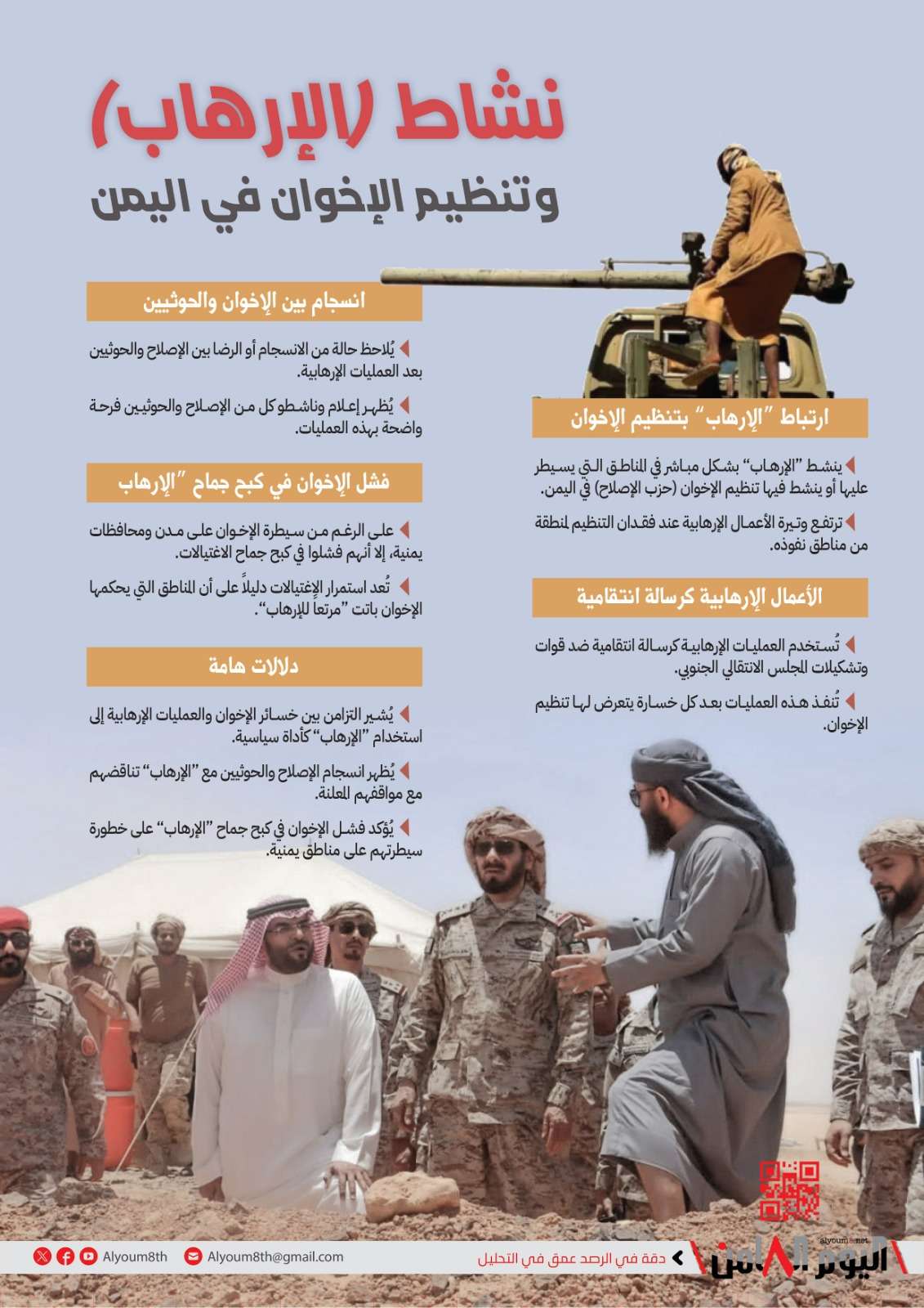 انفوجرافيك| نشاط "الإرهاب" وتنظيم الإخوان في اليمن
