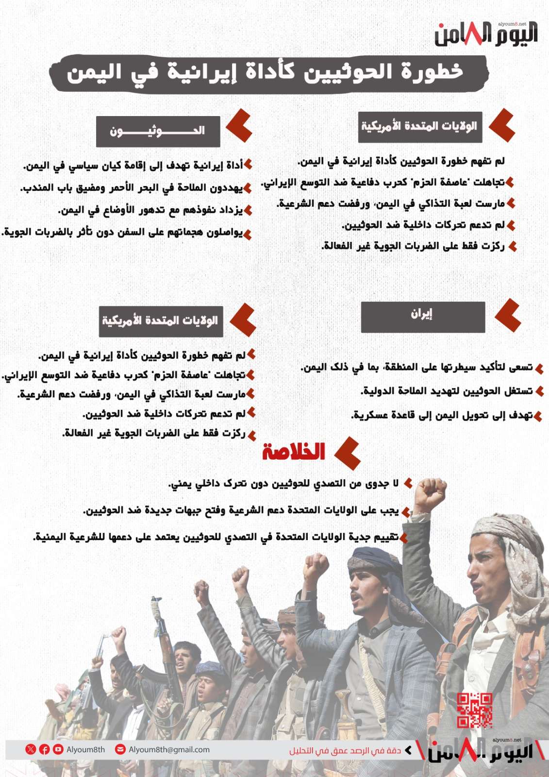 انفوجرافيك| خطورة الحوثيين كأداة إيرانية في اليمن