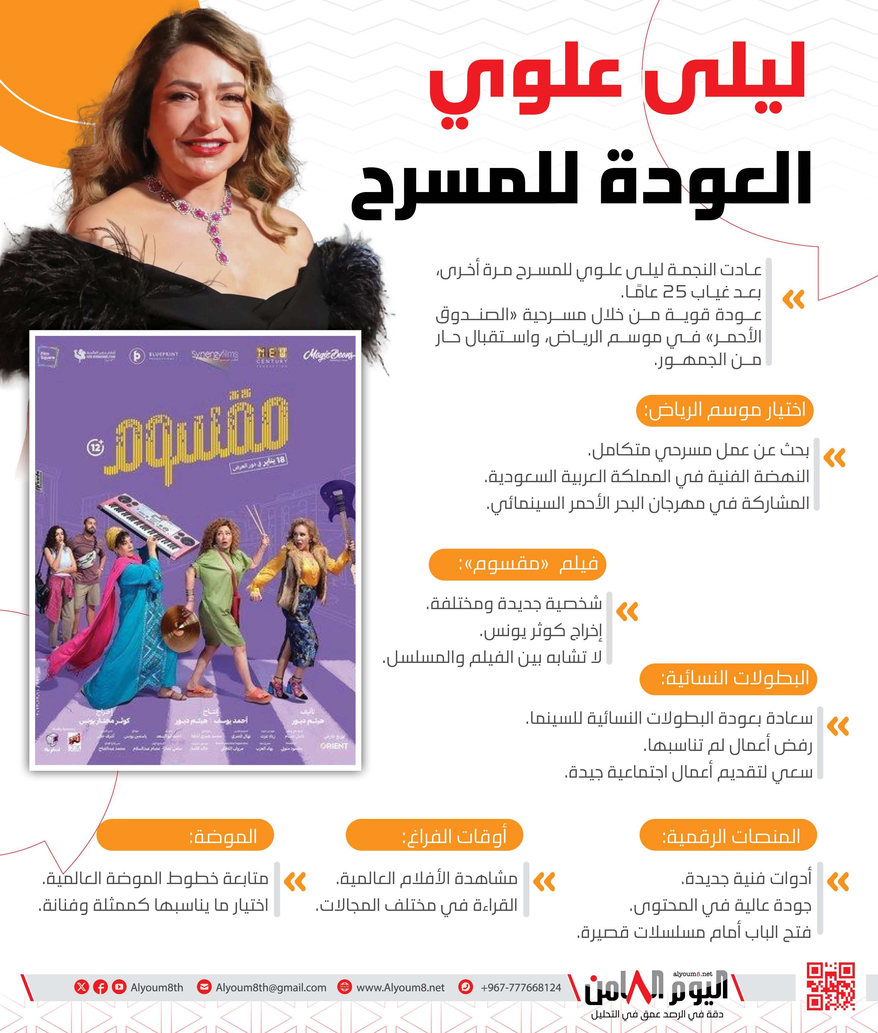انفوجرافيك| ليلى علوي.. العودة للمسرح