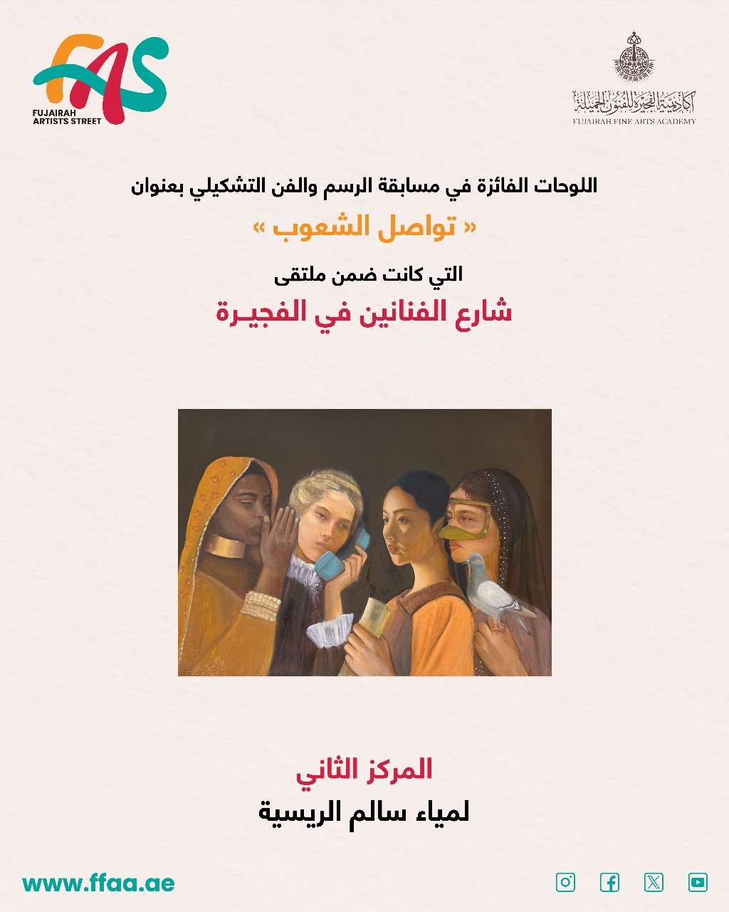 الفجيرة تحتضن الفن العالمي في ختام ملتقى شارع الفنانين "لميا سالم الرئييبة "المركز الثاني"