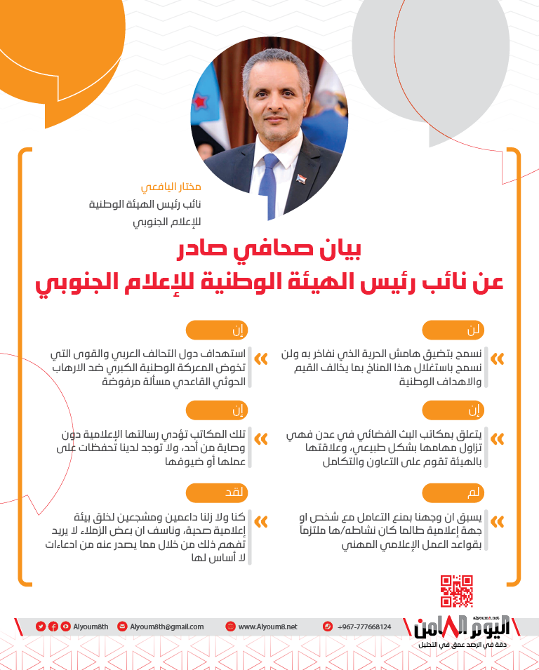 انفوجرافيك | الهيئة الوطنية للإعلام الجنوبي.. بيان صحفي بشأن شركات البث الفضائي