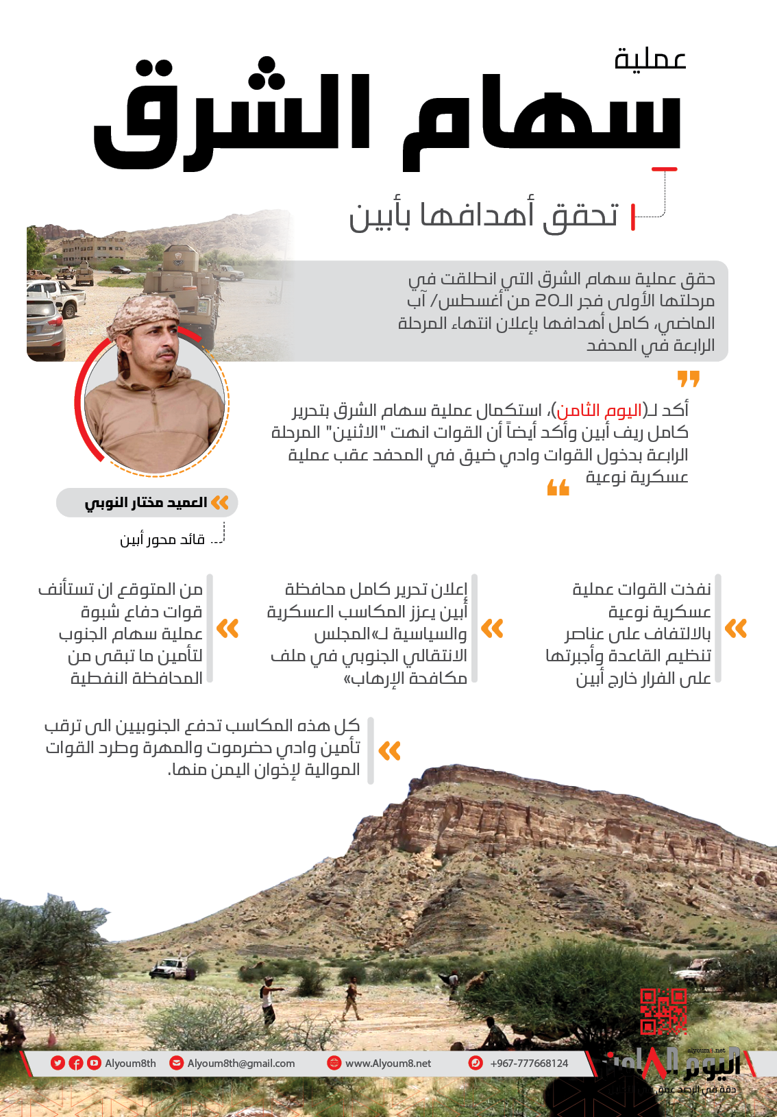 انفوجرافيك | عملية سهام الشرق تعلن تطهير كامل محافظة أبين
