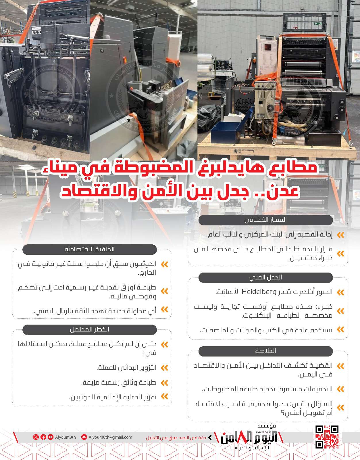 مطابع هايدلبرغ المضبوطة في ميناء عدن.. جدل بين الأمن والاقتصاد