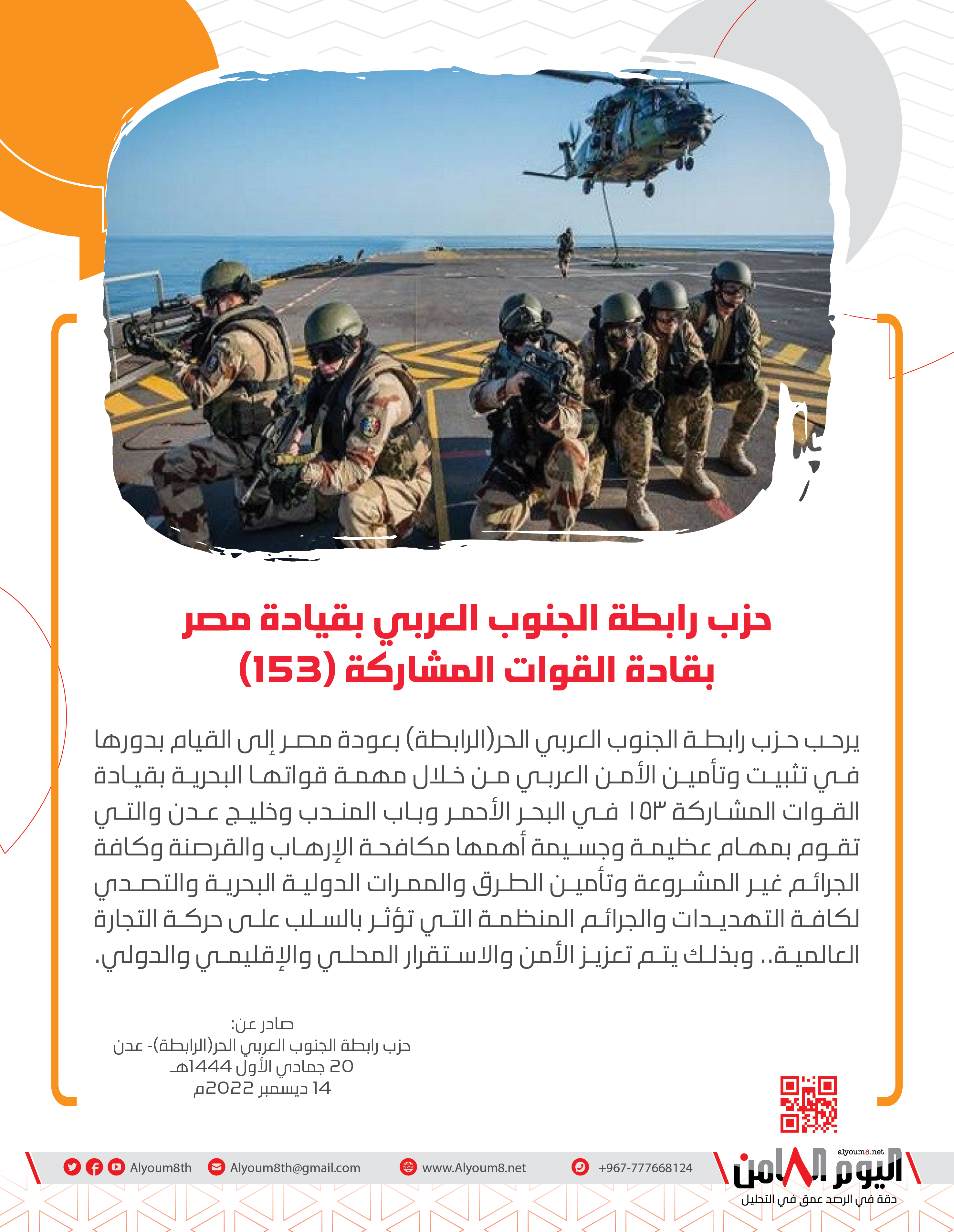 أنفوجرافيك| حزب رابطة الجنوب العربي بقيادة مصر بقادة القوات المشاركة (153)