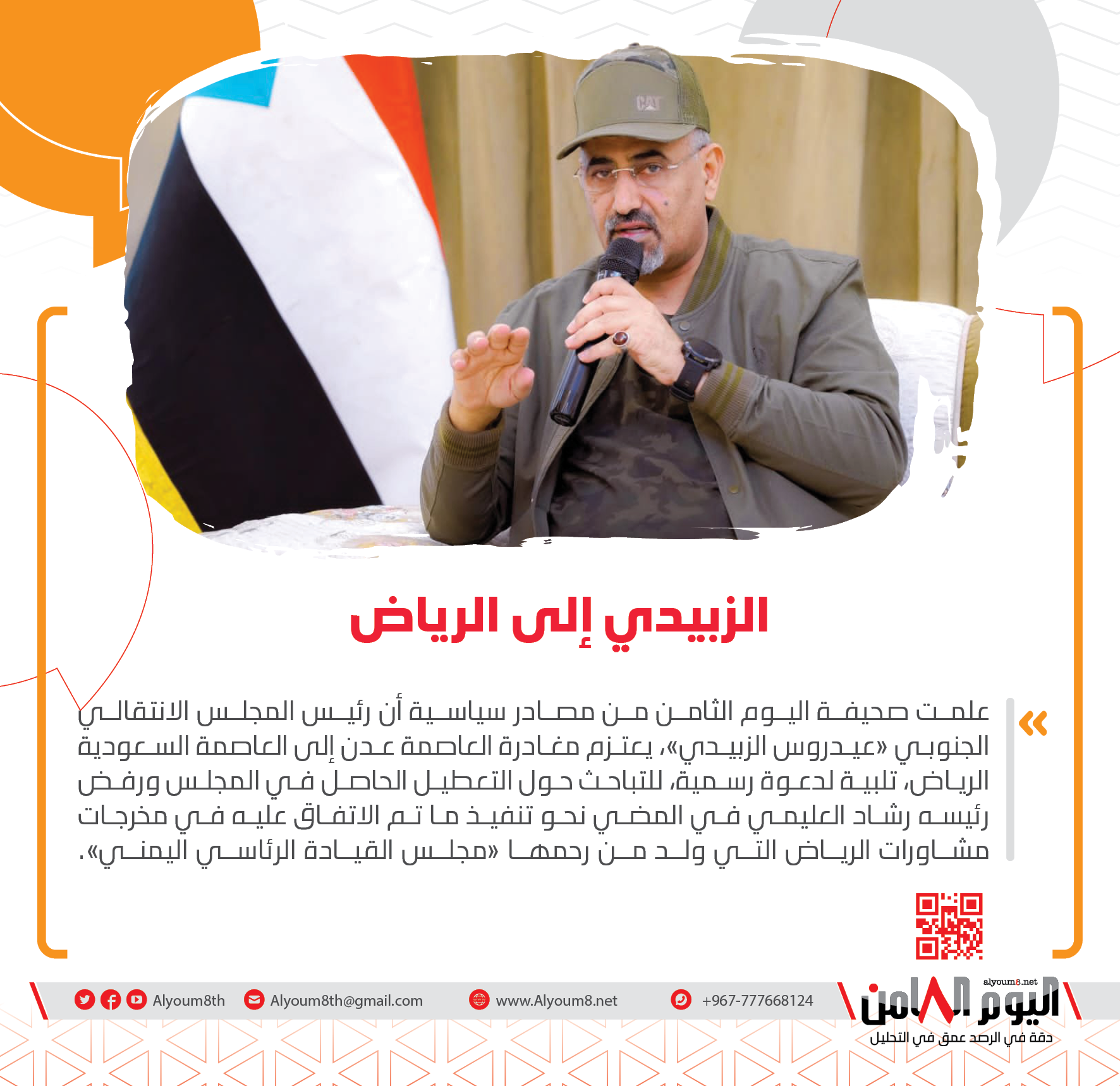 رئيس المجلس الانتقالي الجنوبي إلى العاصمة السعودية الرياض في زيارة عمل تستغرق عدة ايام.