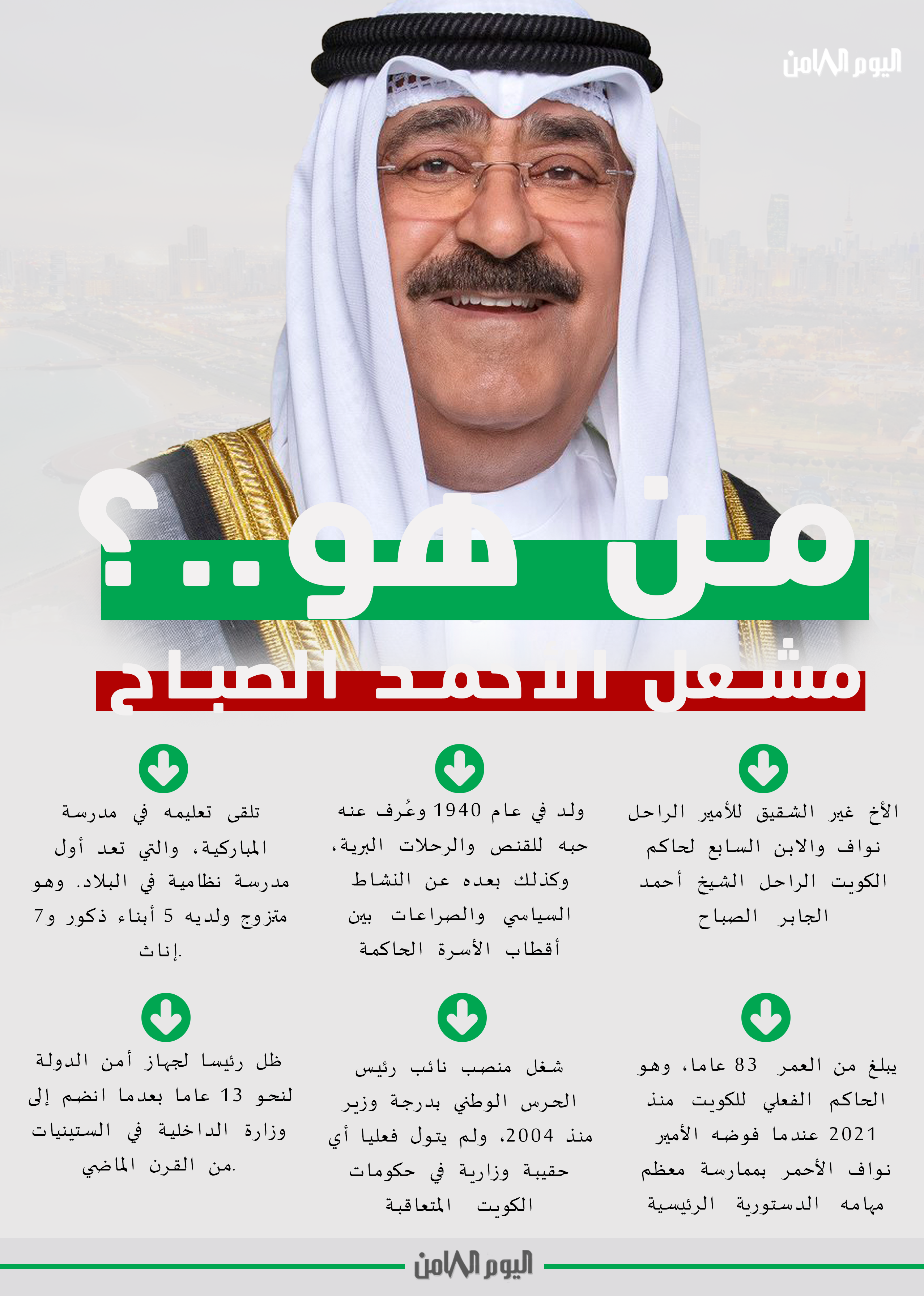 إنفوجرافيك| الشيخ مشعل الأحمد الصباح.. من هو أمير الكويت الجديد؟