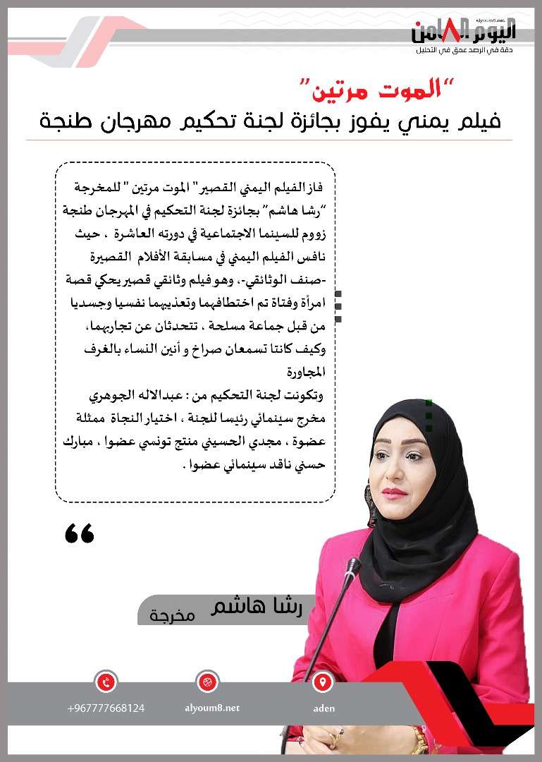 "الموت مرتين " فيلم يمني للمخرجة رشا هاشم يفوز بجائزة لجنة التحكيم في مهرجان طنجة بالمغرب