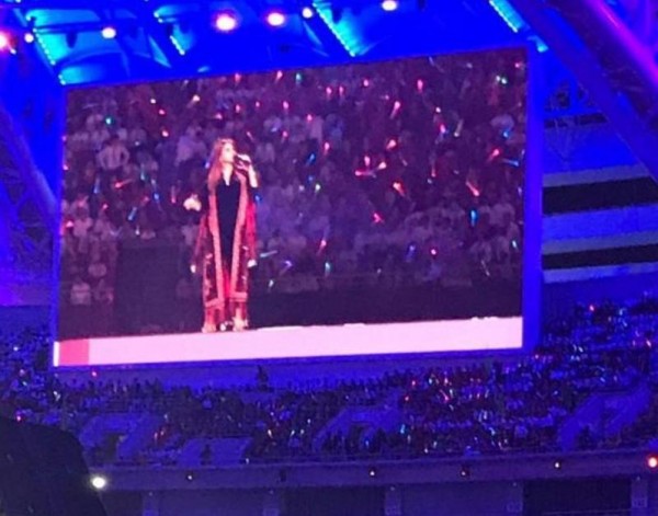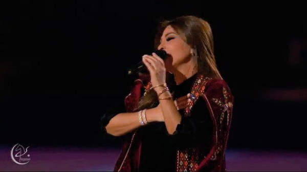 ظهرت الفنانة إليسا ولأول مرة بأسلوب لافت جمع بين الشرقية والعصرية، اعتمدت فيه عباءة شرقية من خامة المخمل المطرزة وباللون العنابي ونسقتها بأسلوب عصري ومتجدد مع سروال وقميص كلاسيكيين باللون الأسود.