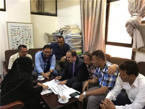 وزير الإعلام اليمني ونائبه في مقر مؤسسة 14 أكتوبر للصحافة والطباعة والنشر