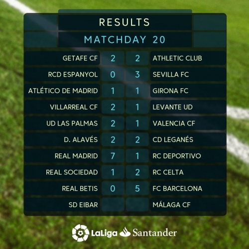 نتائج مباريات الجولة 20 من الليجا