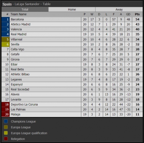 ترتيب الدوري الاسباني فى الجولة 20