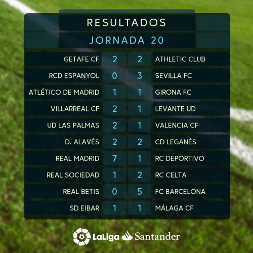 نتائج مباريات الجولة 20 من الدورى الإسبانى