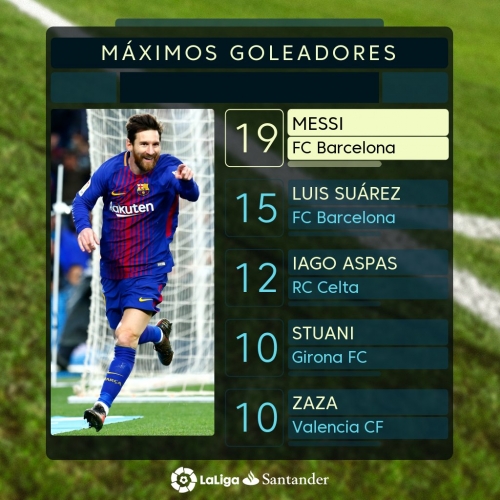 ويملك فريق برشلونة 54 نقطة فى رصيده احتل بها المركز الأول فى جدول ترتيب الدورى الإسبانى، متفوقا بفارق 11 نقطة عن أتلتيكو مدريد صاحب المركز الثانى برصيد 43 نقطة.
