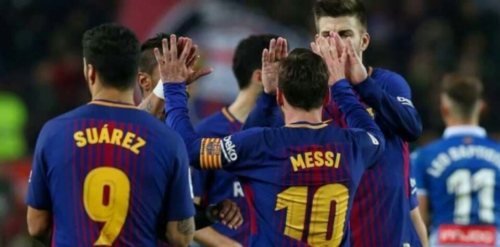 وهدأت الأعصاب باستاد نو كامب بهدفين مبكرين من لويس سواريز وليونيل ميسي إذ كانت تخشى الجماهير من مصير ريال مدريد وأتليتيك بيلباو وريال سوسيداد الذين ودعوا البطولة أمام منافسين مغمورين.
