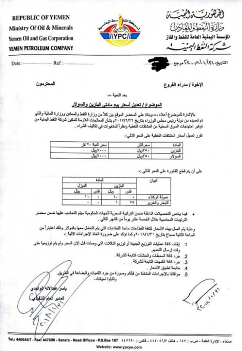 حيث اظهرت وثيقة اقرار الحوثيين ببيع الدبة البترول بسعر 7000 ريال رسمياً، فيما سيقوم اصحاب المحطات برفع السعر اكثر من ذلك وهو ما يضاعف الاعباء على المواطنين.