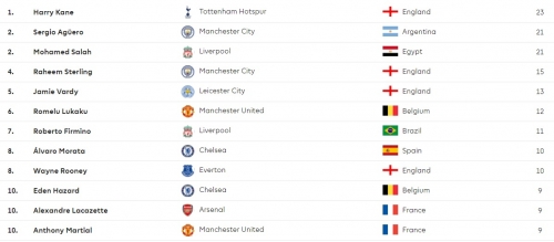 جدول ترتيب هدافى الدورى الإنجليزى