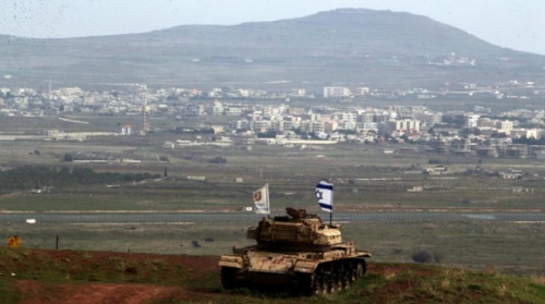 عربة عسكرية إسرائيلية في الطرف المحتل من الجولان قرب الحدود السورية
