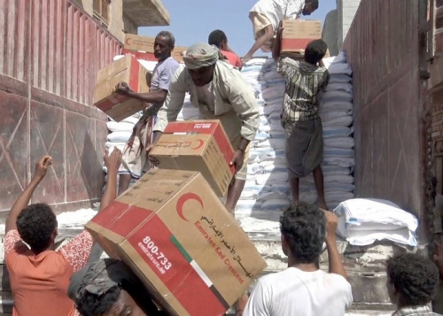 فرق تابعة لهيئة الهلال الأحمر الإماراتي بصدد توزيع مساعدات إغاثية