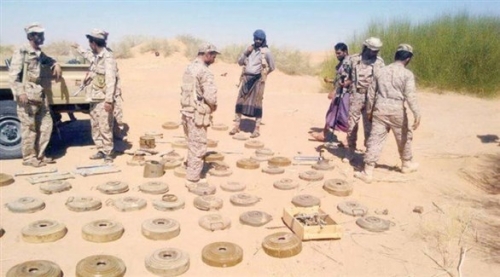 عناصر من الجيش اليمني يبطلون عدداً من ألغام الحوثي (أرشيف)