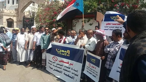 وقفة احتجاجية بحضرموت تطالب بإغلاق قناة “اليمن”