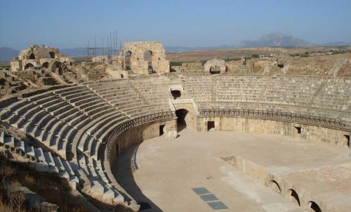 ولم يبق من المسرح إلا القليل وهي الحلبة ومداخل الحيوانات والساحة التي يجلس بها الحاكم.