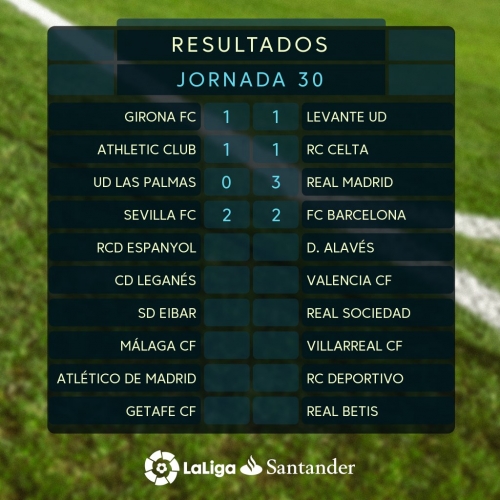 نتائج مباريات الجولة 30 من الدوري الاسباني