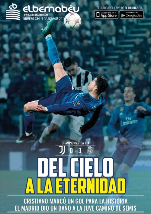 أما صحيفة "البرنابيو" فعنونت "من السماء إلى الخلود.. يوفنتوس 0 – 3 ريال مدريد"، وتصدر مقصية كريستيانو رونالدو غلاف الصحيفة المنتمية للنادى الملكى.