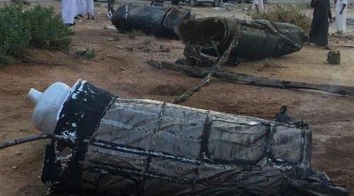 بقايا صاروخ أطلقه الحوثيون على المخأ